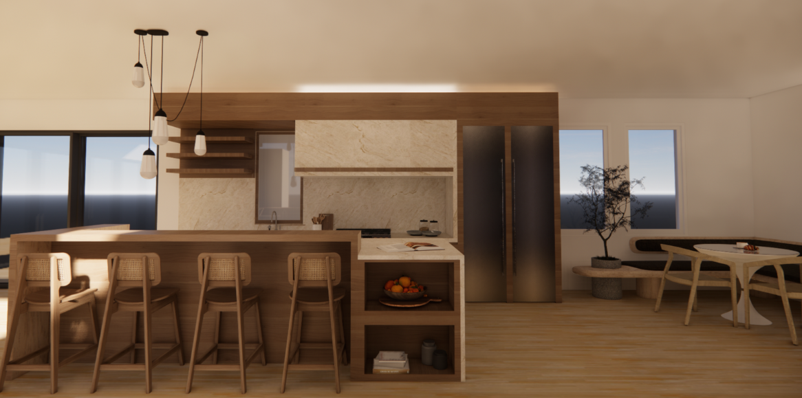 From the kitchen to the baths, living spaces, and office, the design celebrates individuality through unexpected pairings and carefully curated finishes, creating an environment that feels both elevated and uniquely personal.