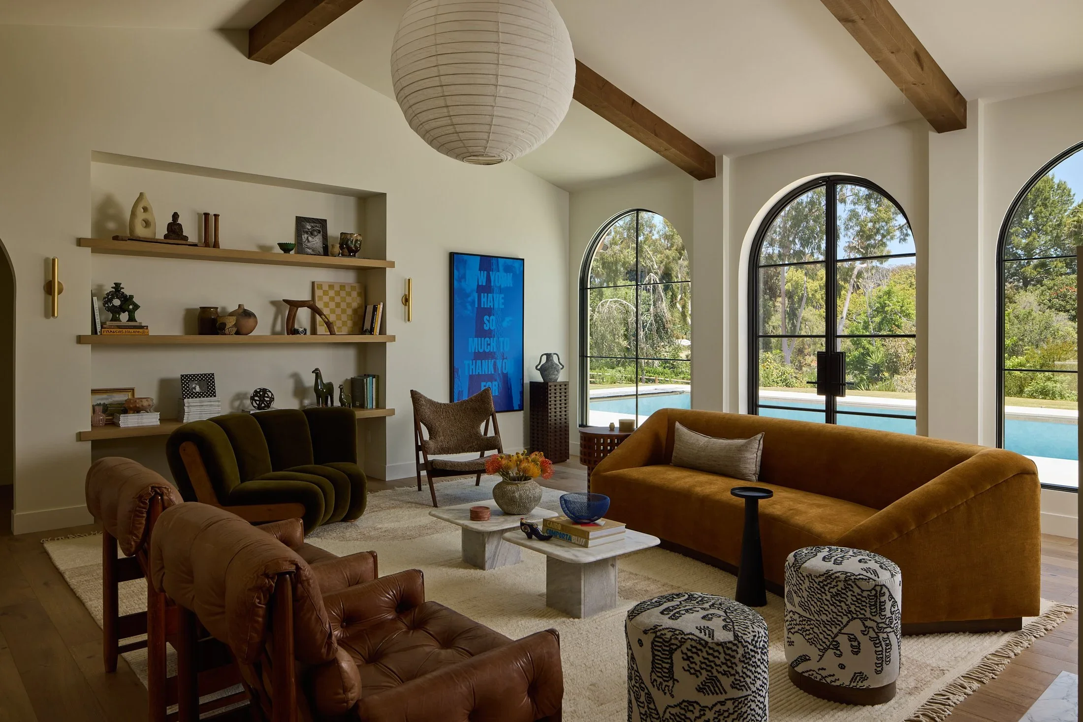 From the velvet statement sofa to curated objects sourced from around the world, every detail was selected to reflect the client’s individuality and style.